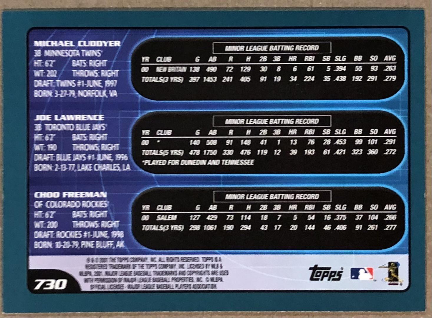 Card #730 MLB, baseball, rookie