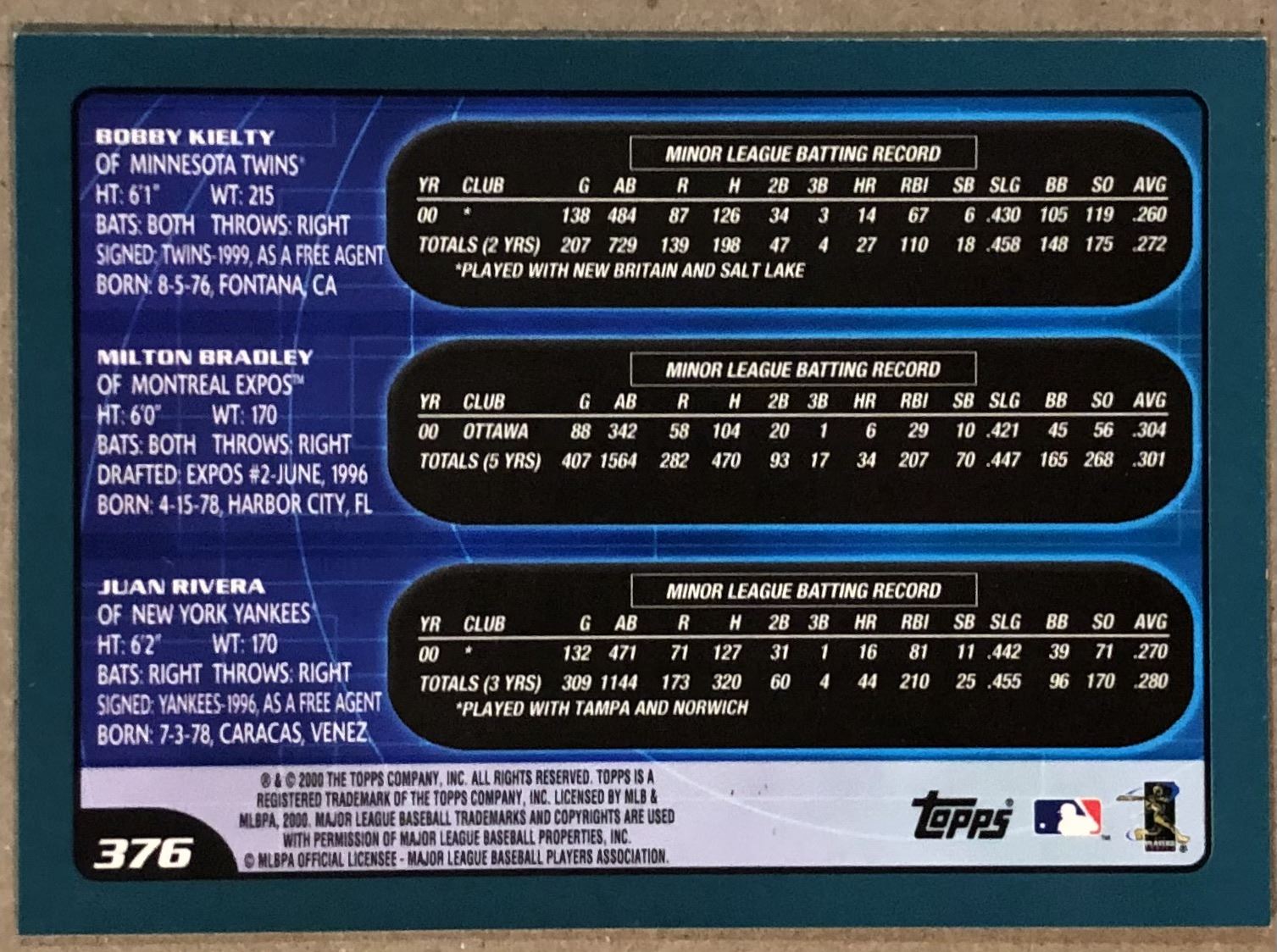 Card #376 MLB, baseball, rookie