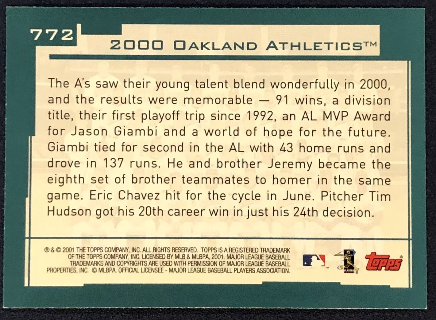 Card #772 MLB, baseball