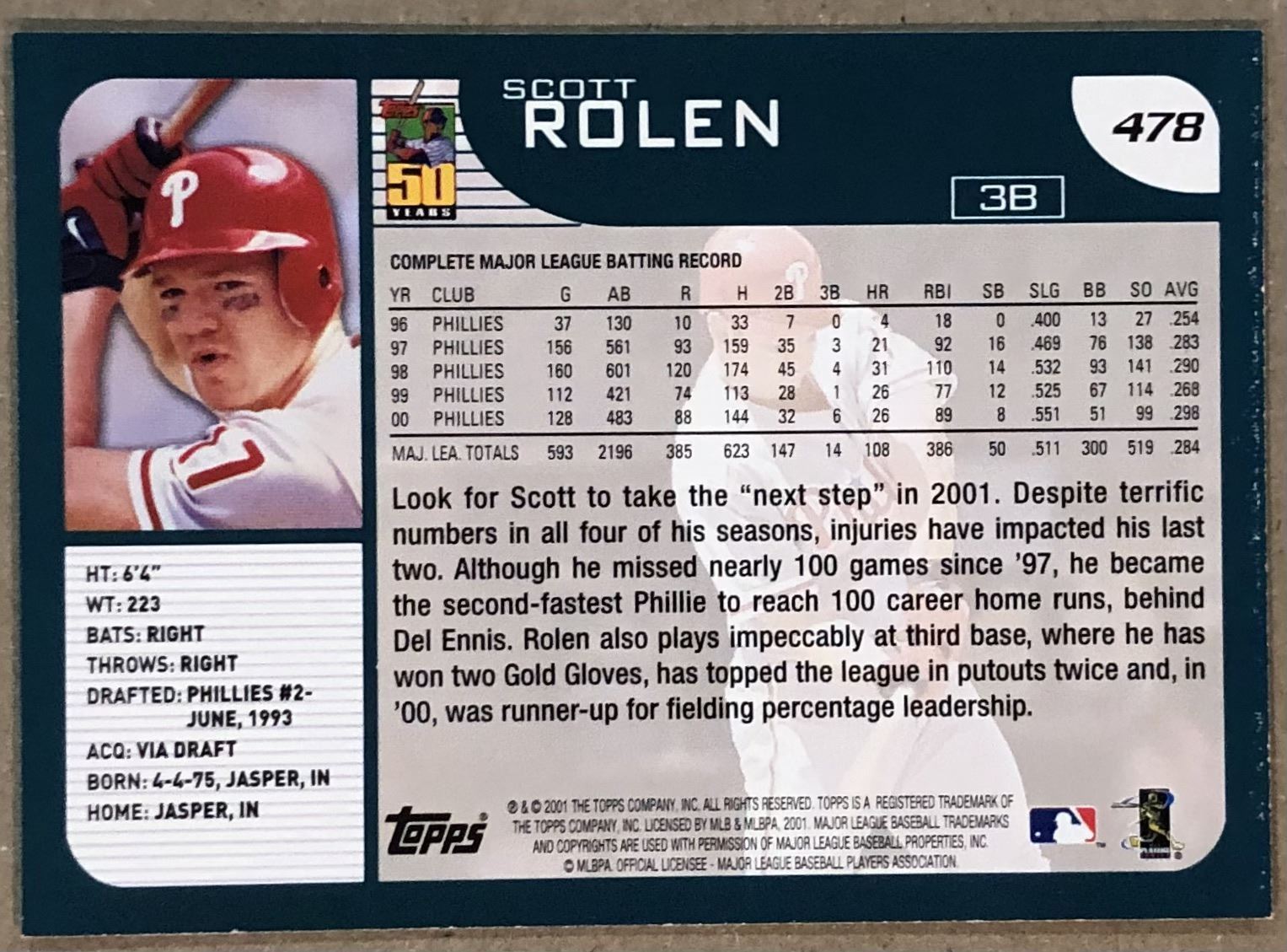 Card #478 MLB, baseball, hall of fame