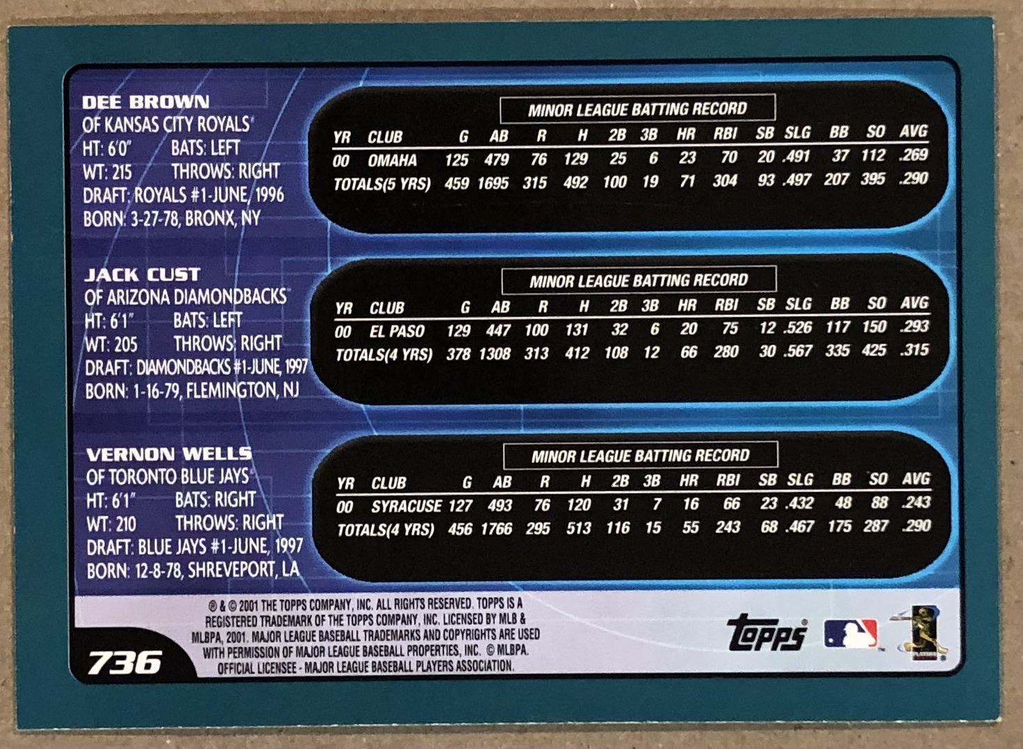 Card #736 MLB, baseball, rookie