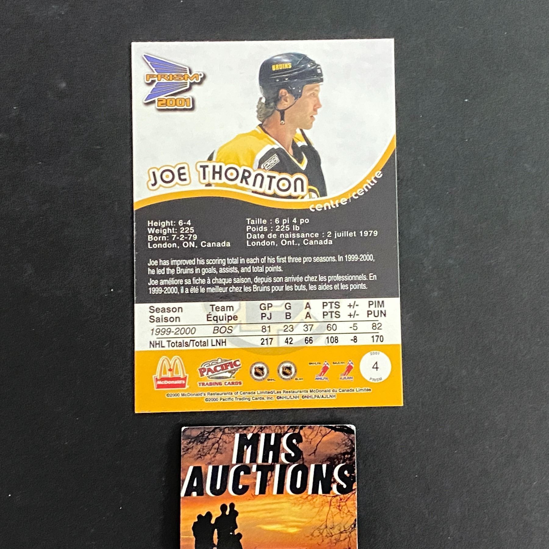 2001 UPPER DECK MCDONALDS JOE THORNTON BLUE RARE HOCKEY CARD