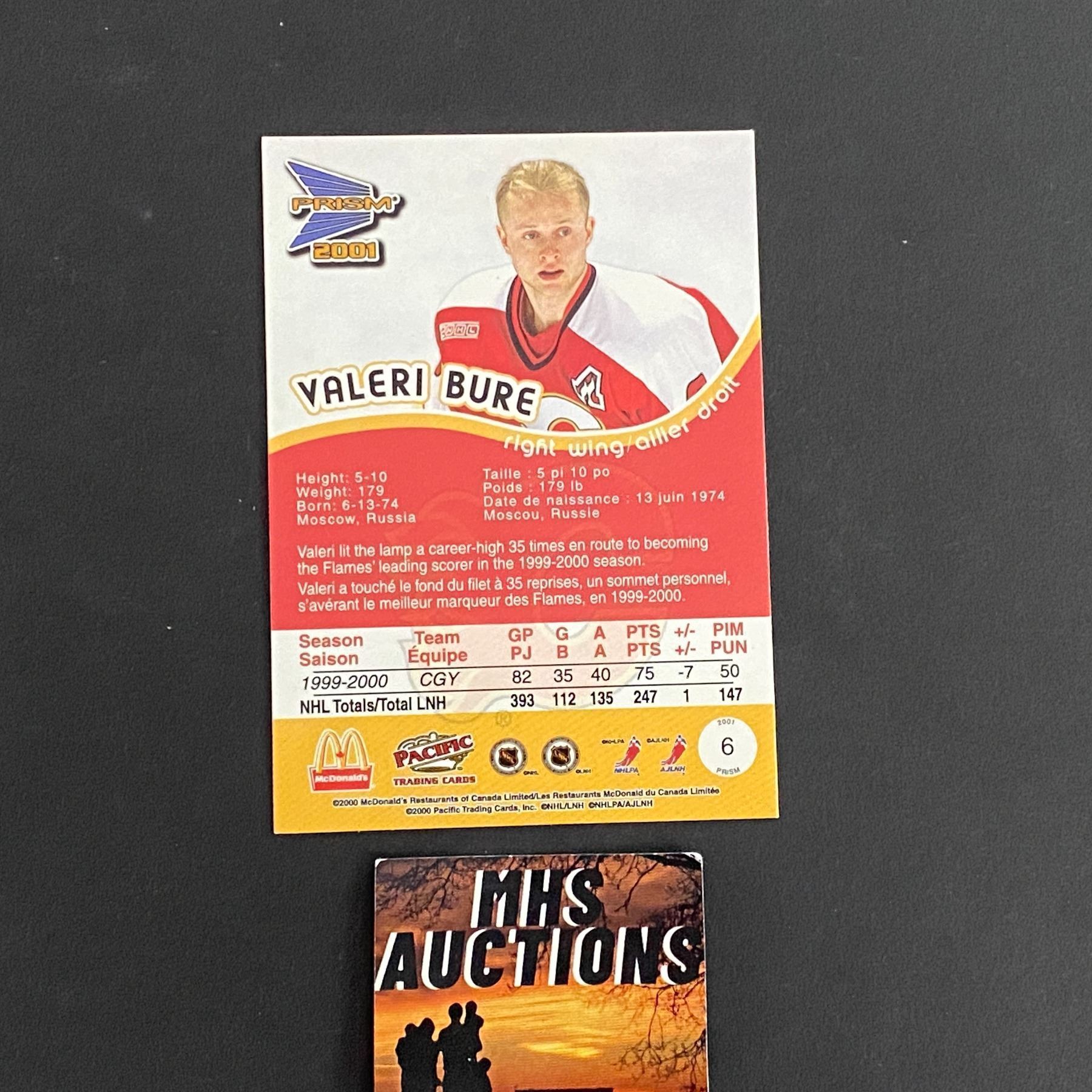 2001 UPPER DECK MCDONALDS VALERI BURE BLUE RARE HOCKEY CARD