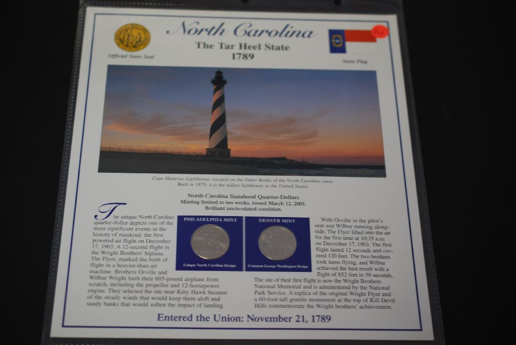 2001 US North Carolina State Quarter Mint Set W/Postal Stamps; P&D Mints; Lot of 2