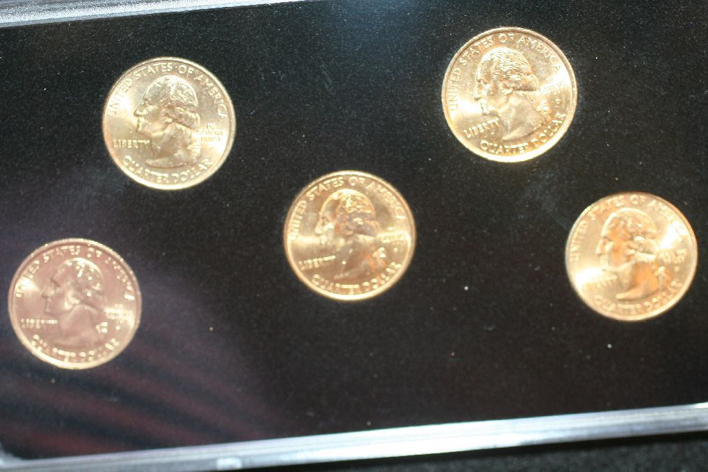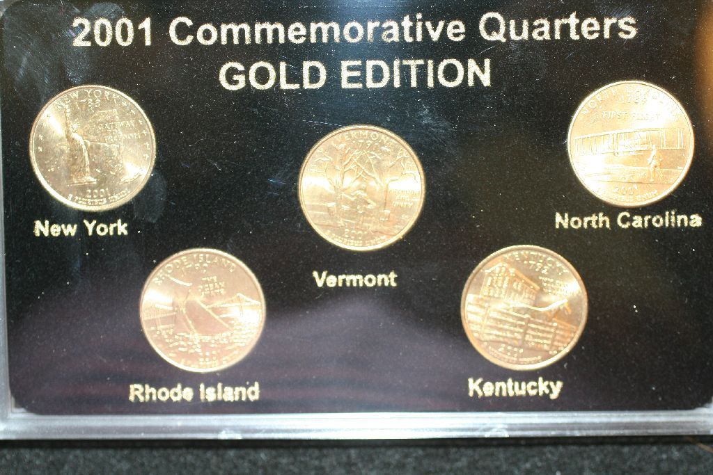 2001 US State Quarter Commerative Gold Edition Mint Set, P&D Mints, 24K Gold Layered, BU