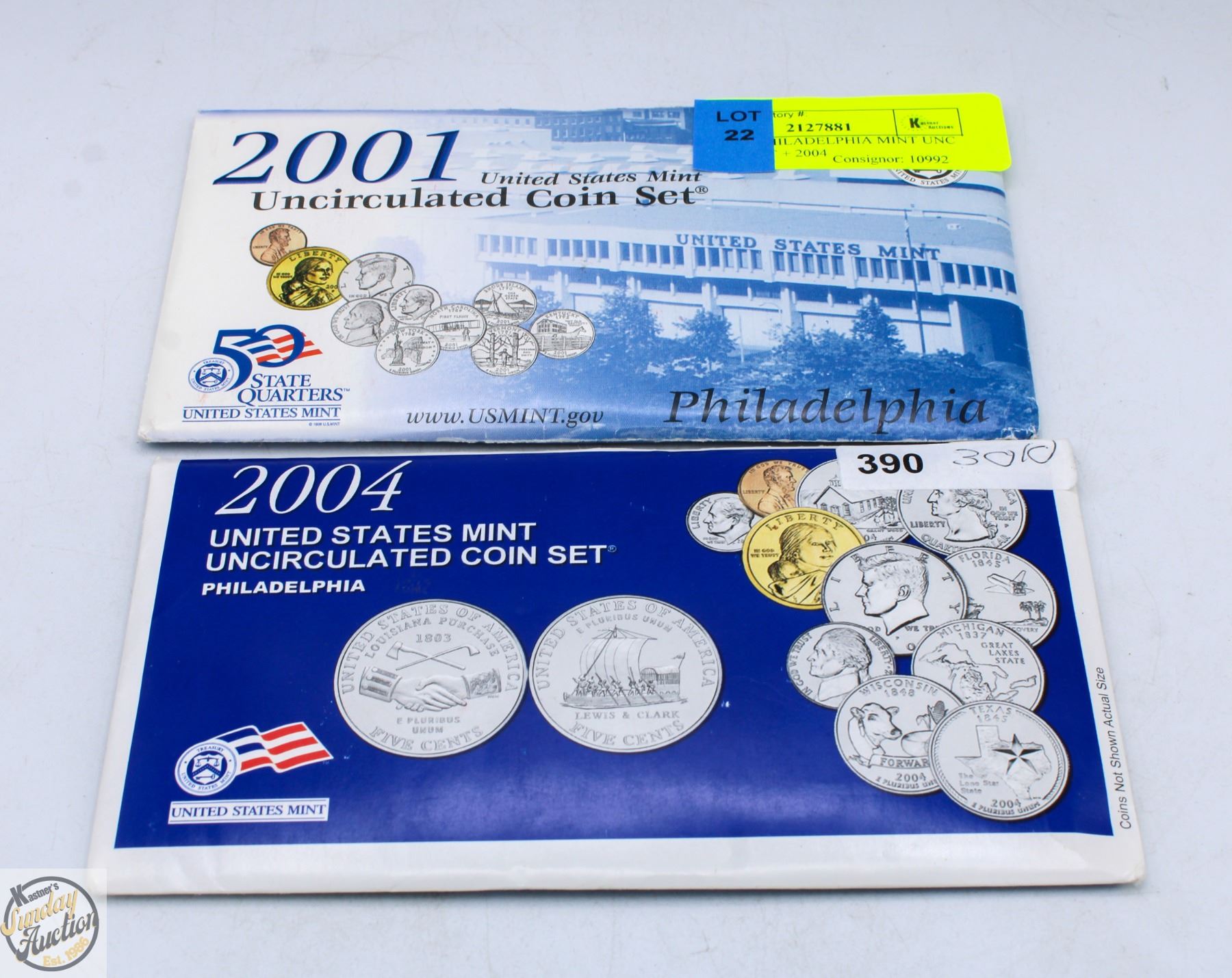 2001 USA PHILADELPHIA MINT UNC 10 COIN SET + 2004