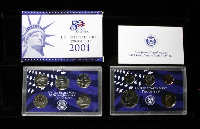 The Set contains 5 Proof State Quarters, a Proof Half Dollar, a Proof Dime, as well as 3 additional Proof coins Including the Sacagawea Proof Dollar coin. Complete with Original Packaging and COA. Much higher Priced set due to lower mintage. Estimated Value $50.