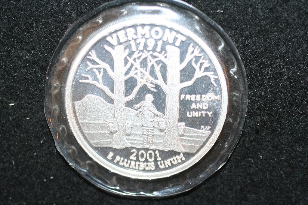 2001 Vermont State Quarter Replica Silver Round; .999 Fine Silver 1 Oz.