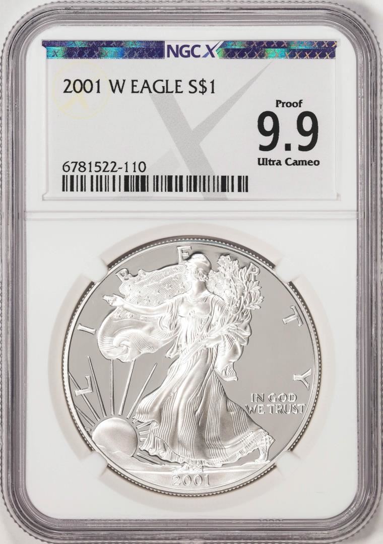 2001-W $1 Proof American Silver Eagle Coin NGCX Proof 9.9 Ultra Cameo