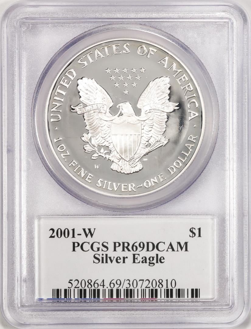 One 2001-W $1 Proof American Silver Eagle Coin PCGS PR69DCAM Edmund C. Moy Signature. PCGS Graded.