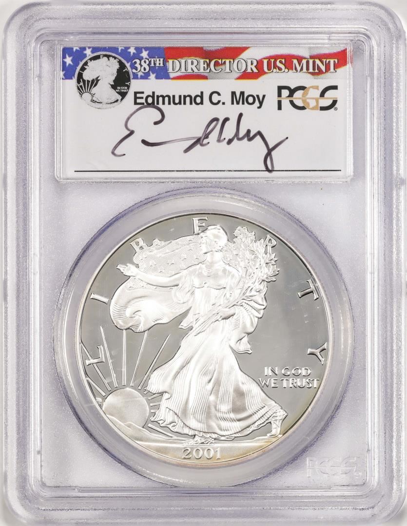 2001-W $1 Proof American Silver Eagle Coin PCGS PR69DCAM Edmund C. Moy Signature