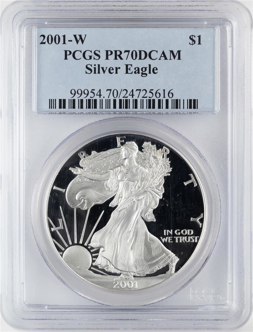 One 2001-W $1 Proof American Silver Eagle Coin PCGS PR70DCAM. PCGS Graded.
