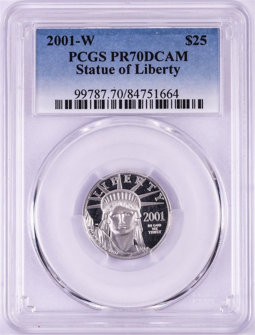 One 2001-W $25 Proof Platinum American Eagle Coin PCGS PR70DCAM. PCGS Graded.