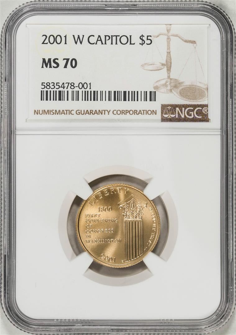 One 2001-W $5 Capitol Visitor Center Commemorative Gold Coin NGC MS70. NGC Certified.