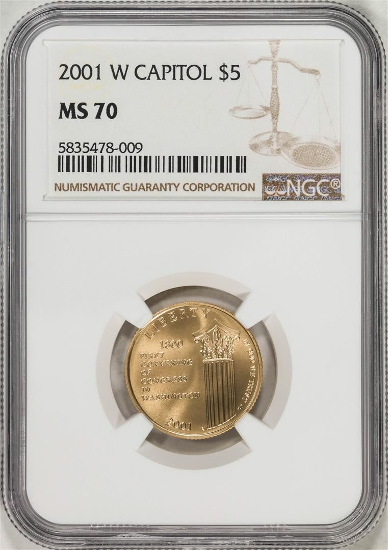 One 2001-W $5 Capitol Visitor Center Commemorative Gold Coin NGC MS70. NGC Certified.