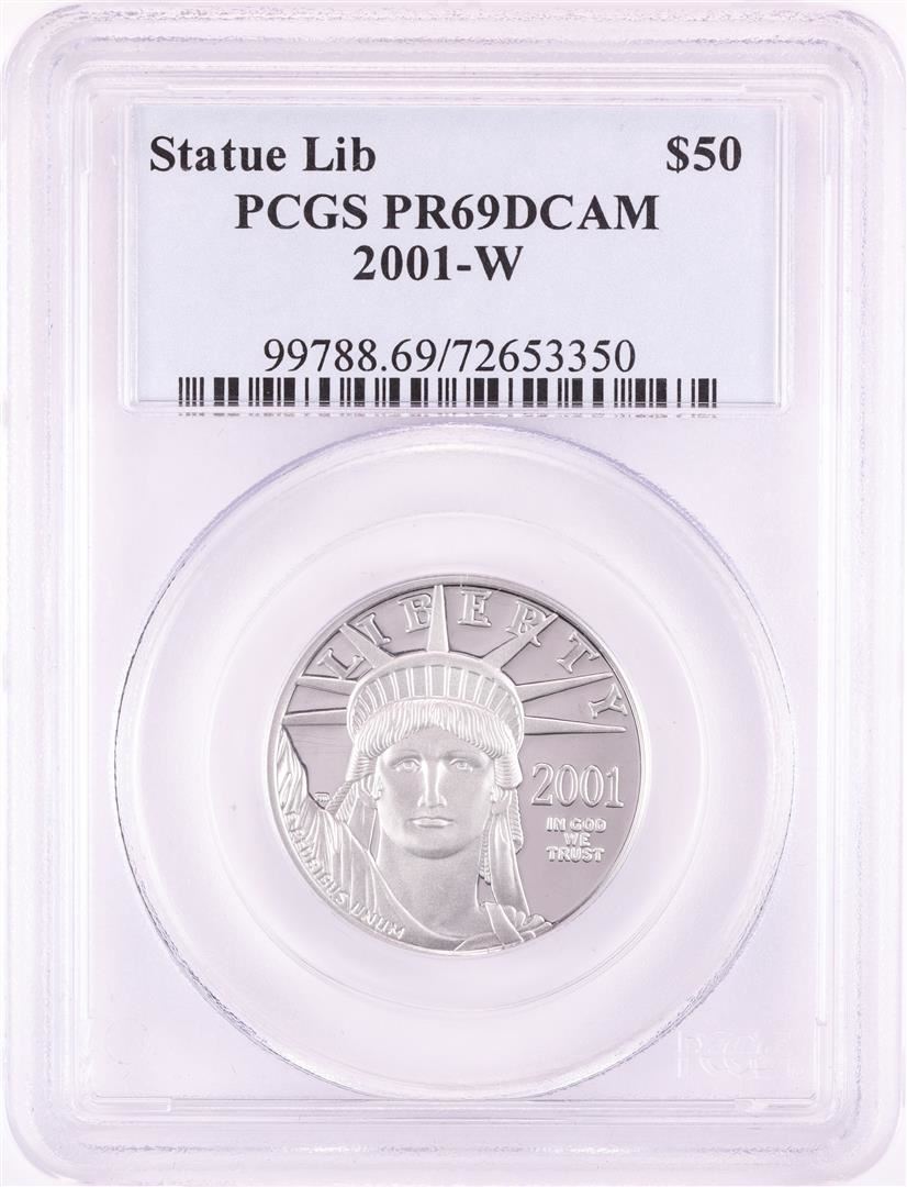 One 2001-W $50 Proof American Platinum Eagle Coin PCGS PR69DCAM. PCGS Graded.