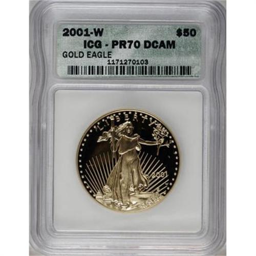 2001-W G$50 One-Ounce Gold Eagle Deep Cameo PR70 ICG