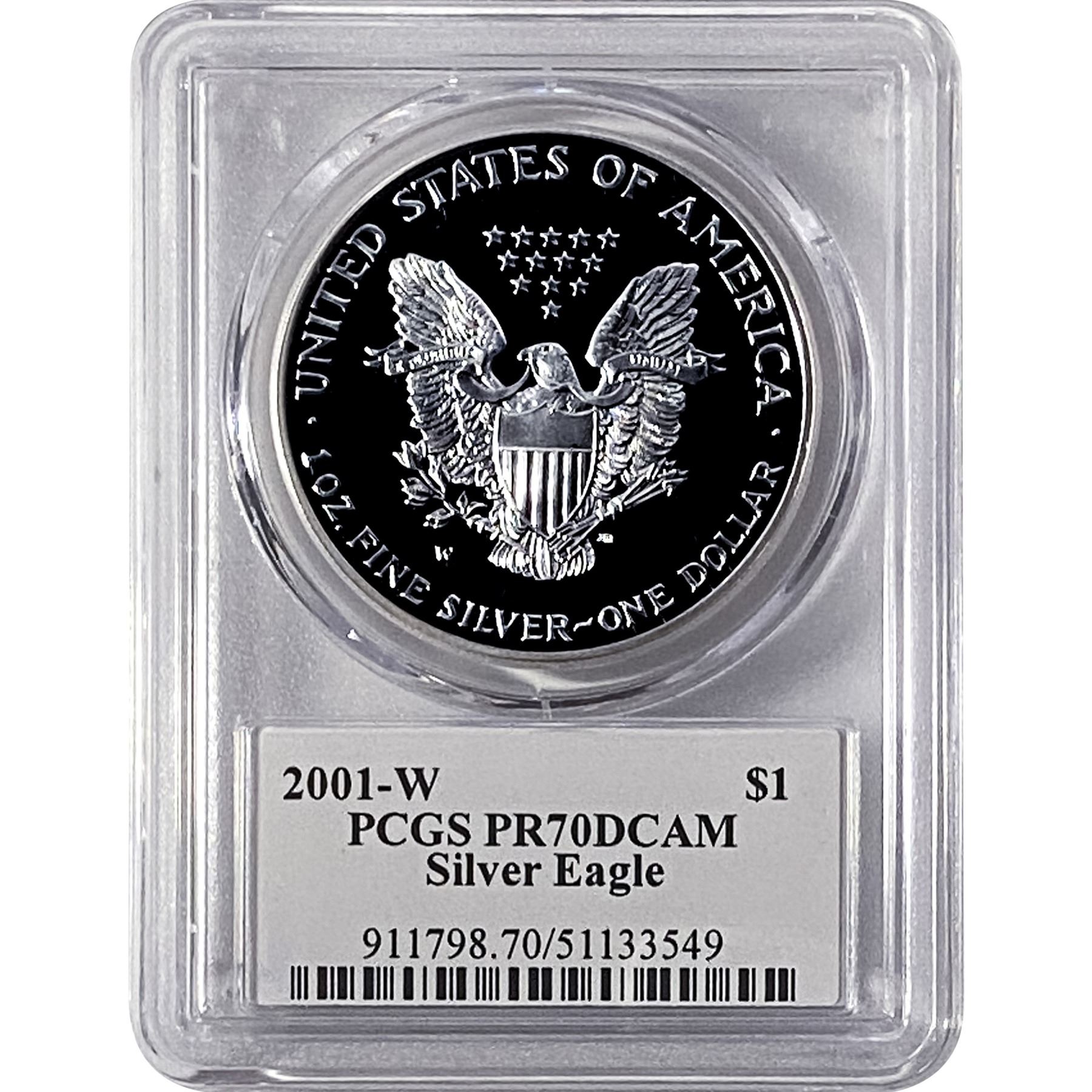 2001-W Silver Eagle PCGS PR70 DCAM Thomas D Rogers