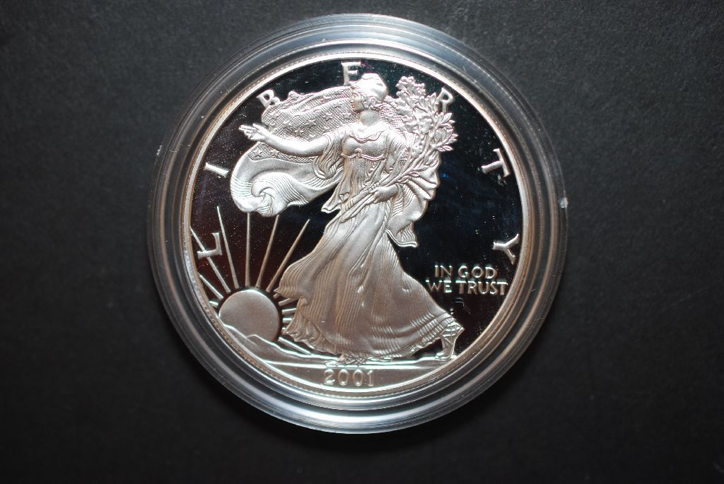 2001-W US Silver American Eagle $1 Proof In Velvet Box With COA Included; 99.9% Silver 1 Oz.; EST. $50-60