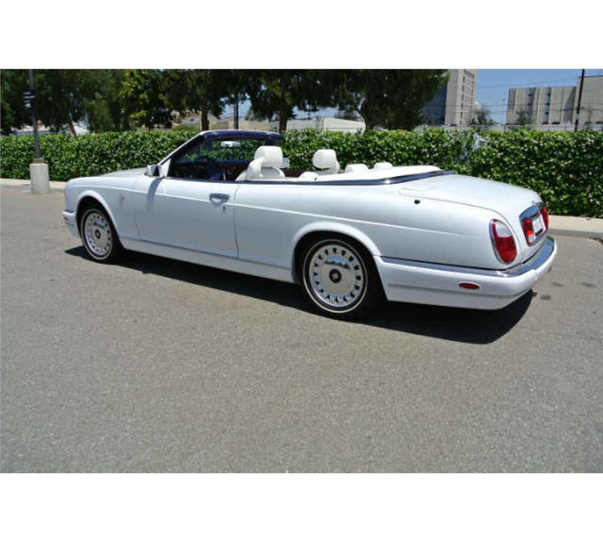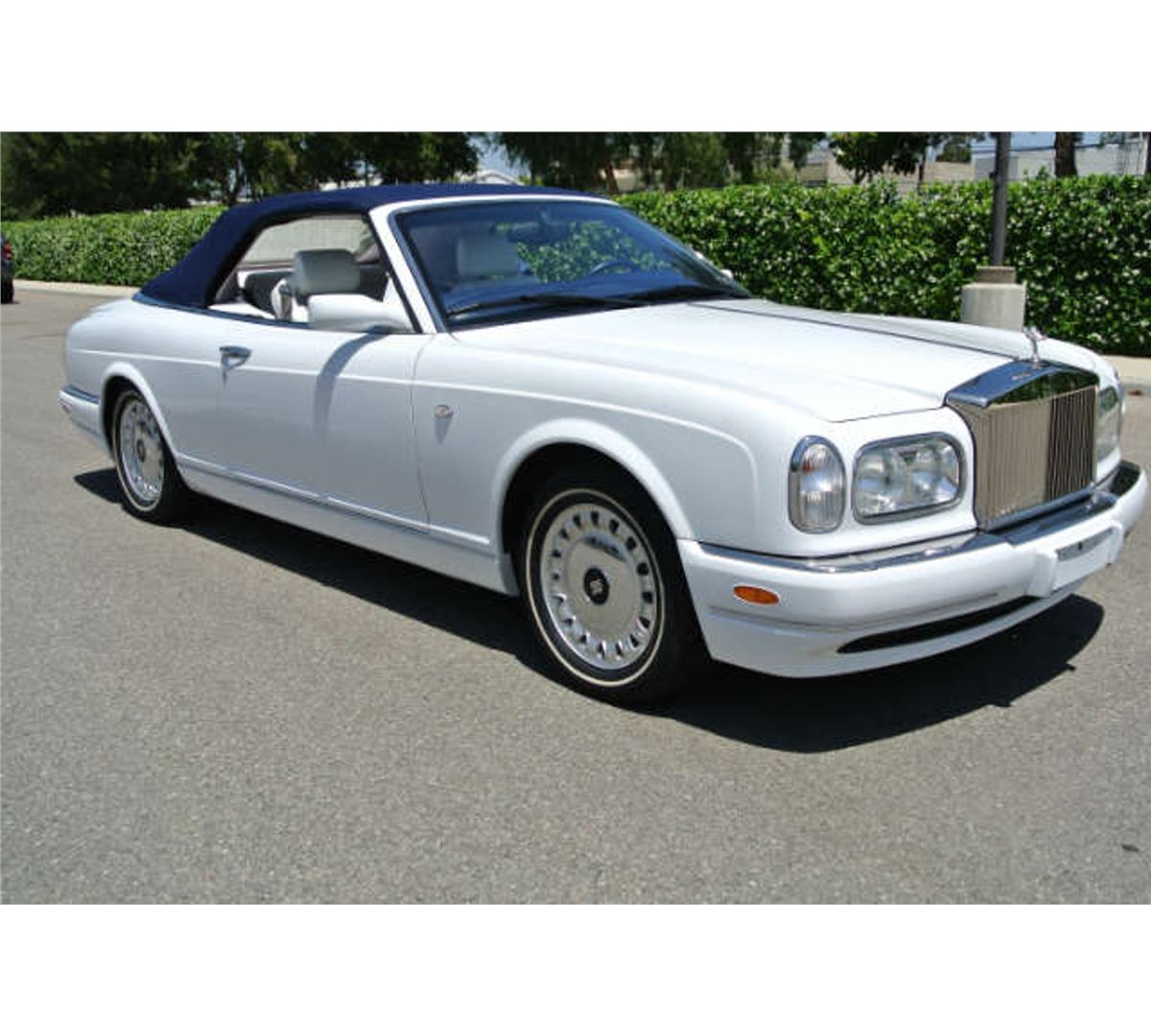 2001 Rolls Royce Corniche ordered in White exterior with White leather interior and blue top, piping, dash and carpets. Lovely condition through out and driven only 11,638 original miles. Vin #SCAZK29E61CX68603.