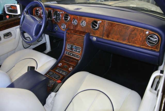 2001 White Rolls-Royce Corniche Convertible. As-Is Condition. 2001 Rolls Royce Corniche ordered in White exterior with White leather interior and blue top, piping, dash and carpets. Lovely condition through out and driven only 14,400 original miles. Vin #SCAZK29E61CX68603.