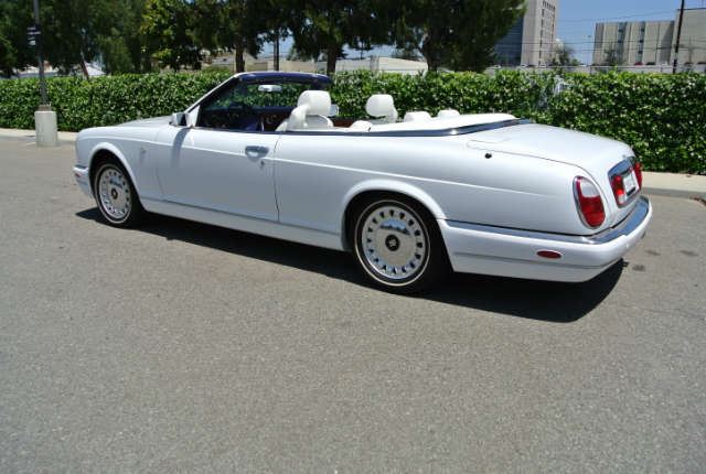 2001 White Rolls-Royce Corniche Convertible. As-Is Condition. 2001 Rolls Royce Corniche ordered in White exterior with White leather interior and blue top, piping, dash and carpets. Lovely condition through out and driven only 14,400 original miles. Vin #SCAZK29E61CX68603.