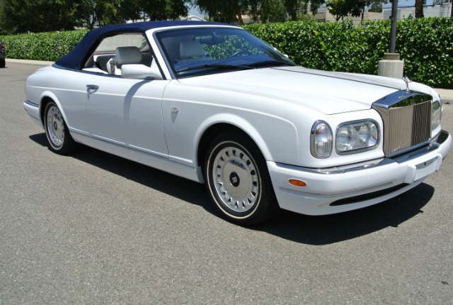 2001 Rolls Royce Corniche ordered in White exterior with White leather interior and blue top, piping, dash and carpets. Lovely condition through out and driven only 11,638 original miles. Vin #SCAZK29E61CX68603.