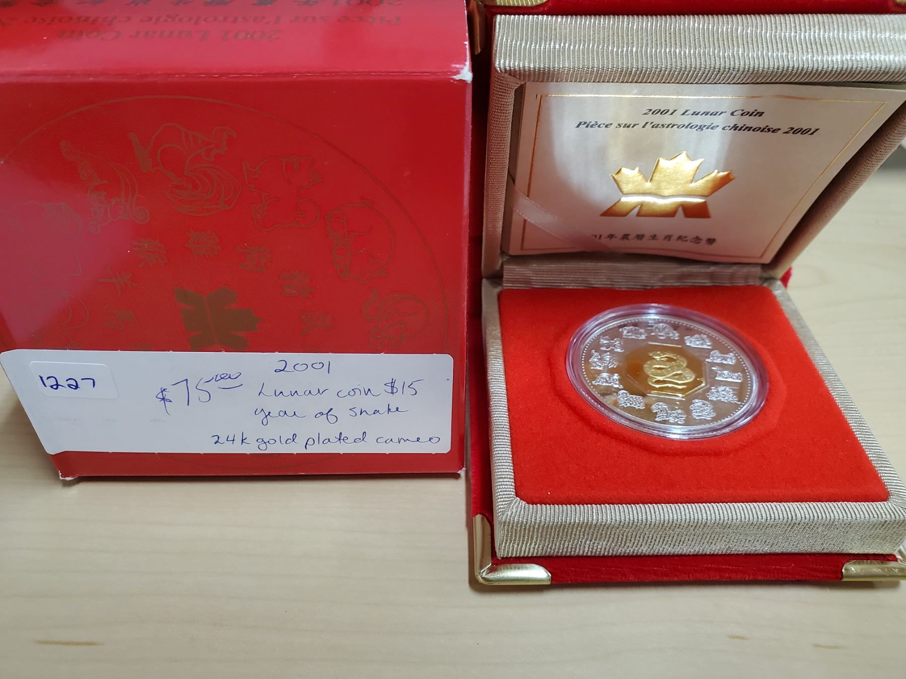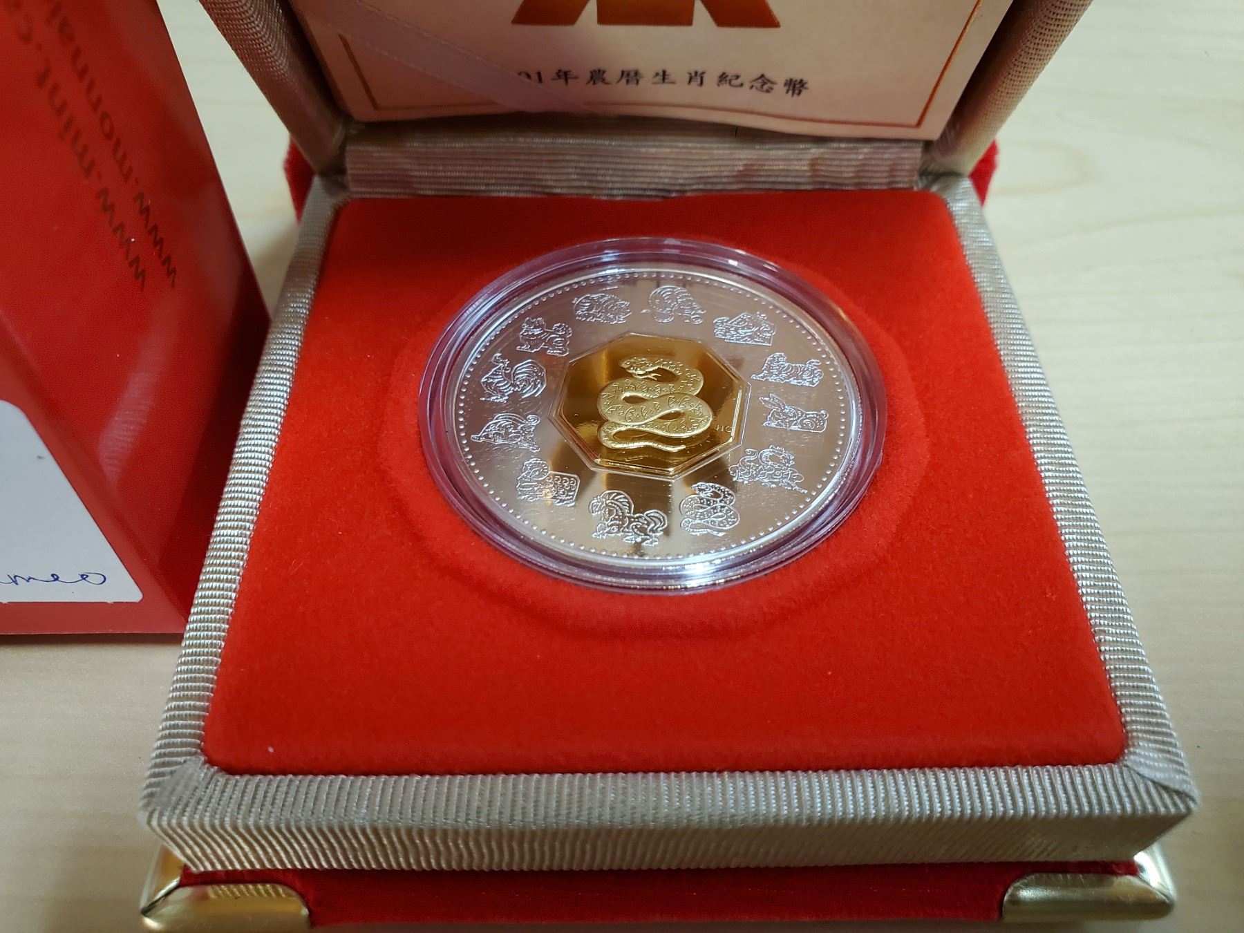 2001 Year of the Snake Lunar $15. Sterling Silver with 24-karat gold on the Cameo. Proof with Ultra Heavy Cameo. Housed in its original case & box of issue.