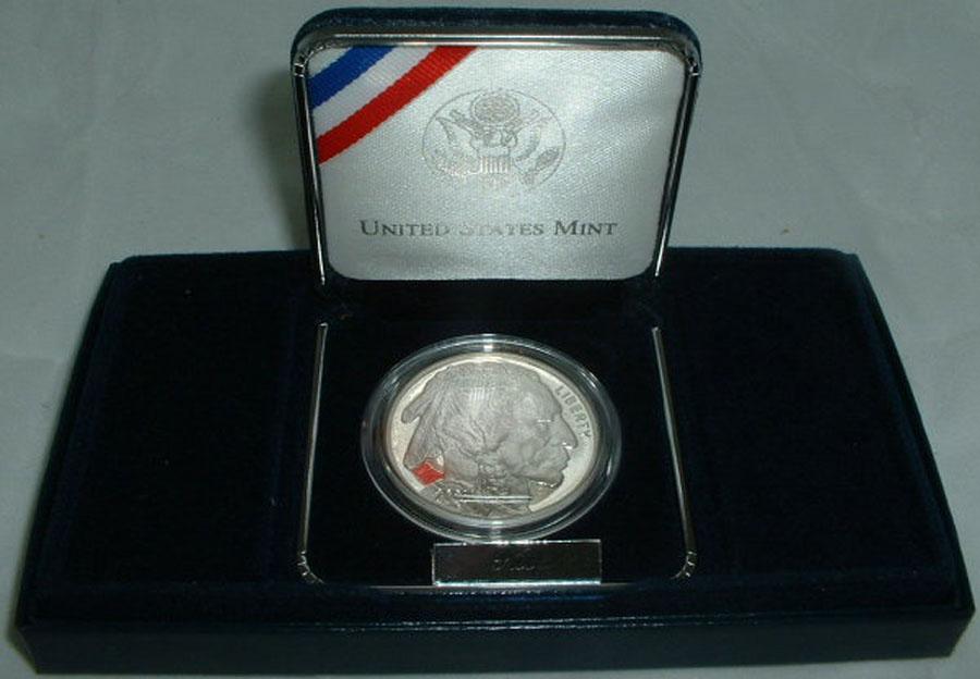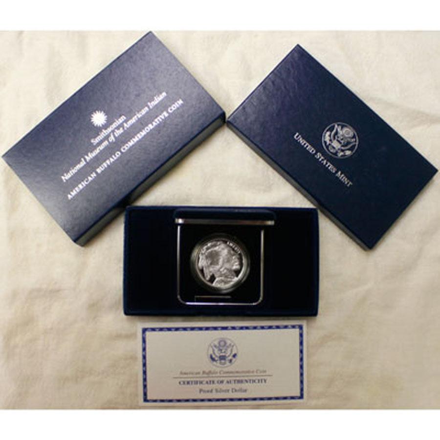The 2001 American Buffalo Silver Dollar was issued to commemorate the recently opened National Museum of the American Indian (NMAI) of the Smithsonian Institution. The classic design of the coin after James Earle Fraser's Buffalo Nickel, made this commemorative coin issue immensely popular with collectors, leading to a prompt sell out. This Proof Buffalo comes with the box outer box and COA. Estimated Value $200