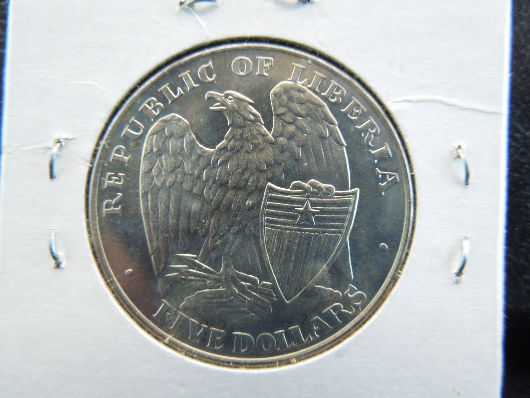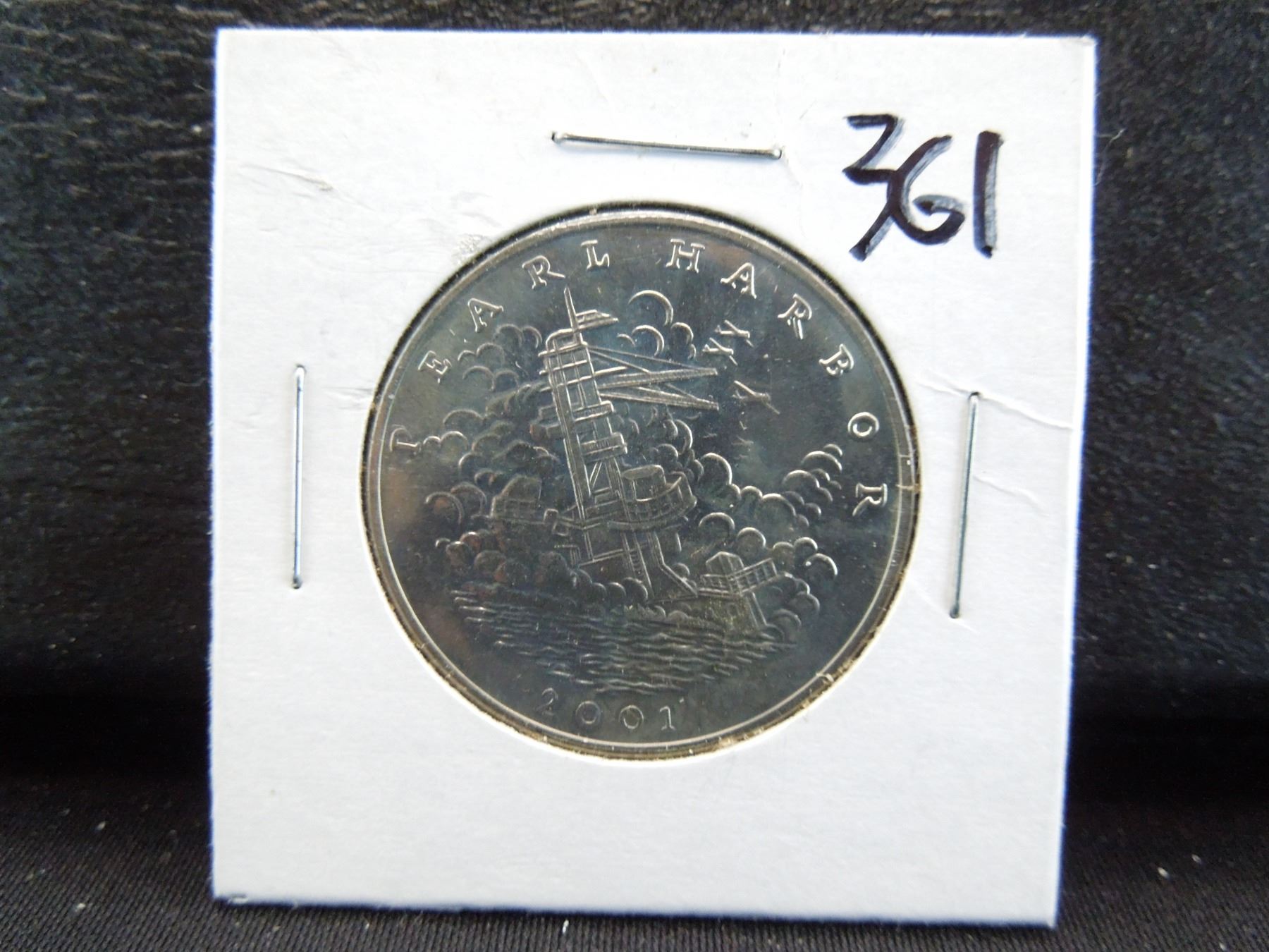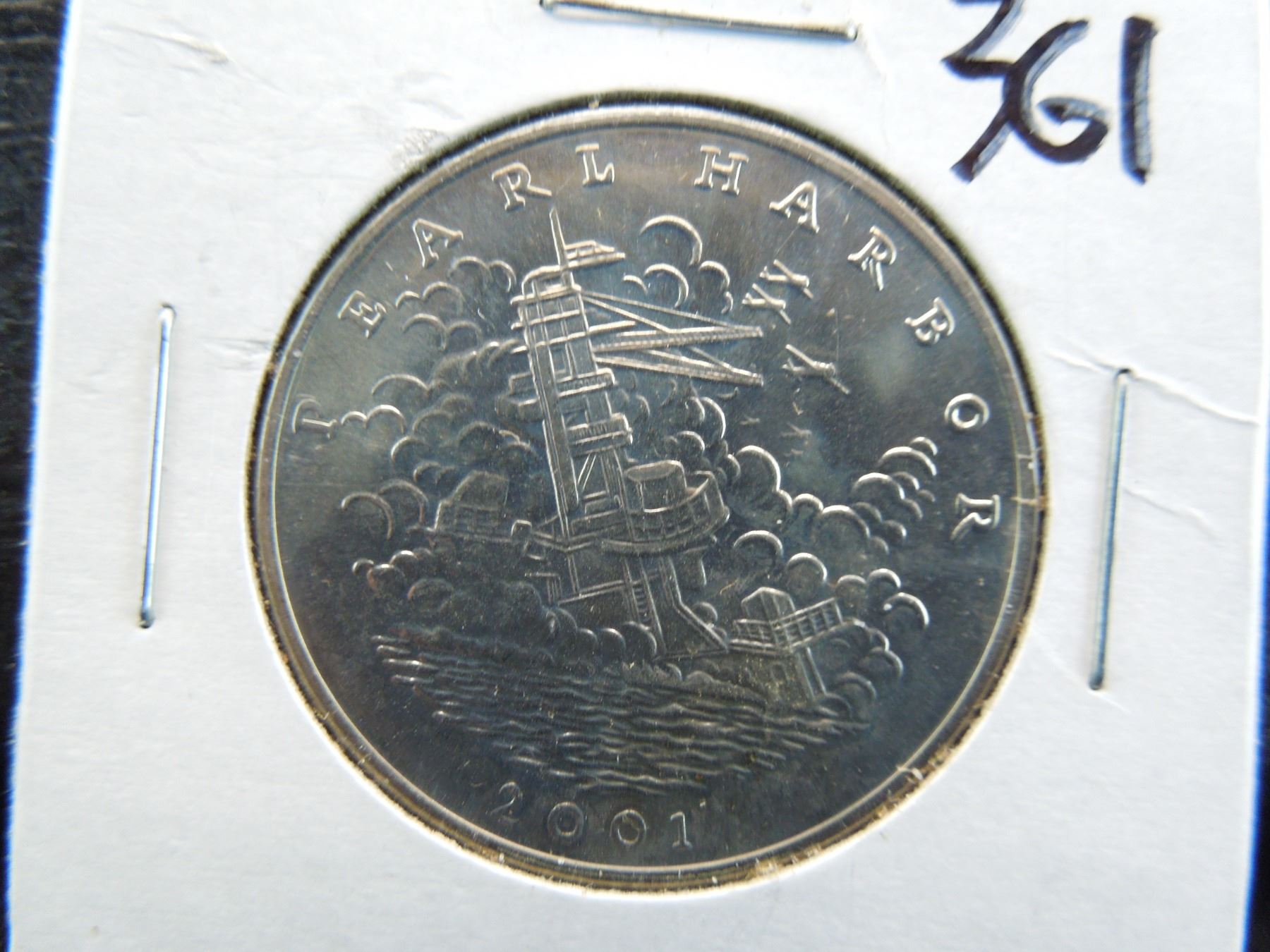 2001 five dollar coin from liberia with the battle of pearl harbor on the reverse