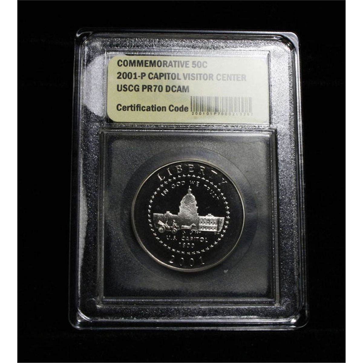 Proof Commemorative Half Dollar Graded PR70 Deep Cameo by USCG. The Commem has 16 stars on the reverse representing the 16 states in 1800 and the number of senators and representatives in 1800, very interesting. Estimated Value $350
