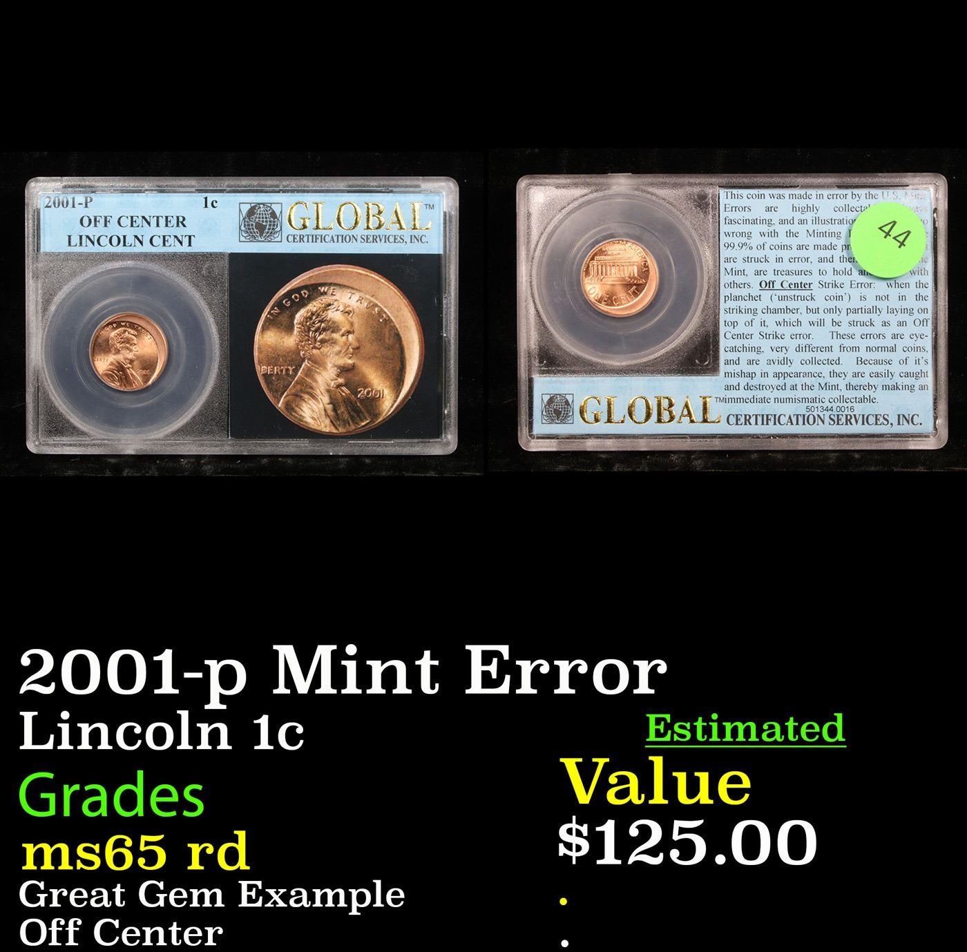 2001-p Mint Error Lincoln Cent 1c Grades Gem Red.
