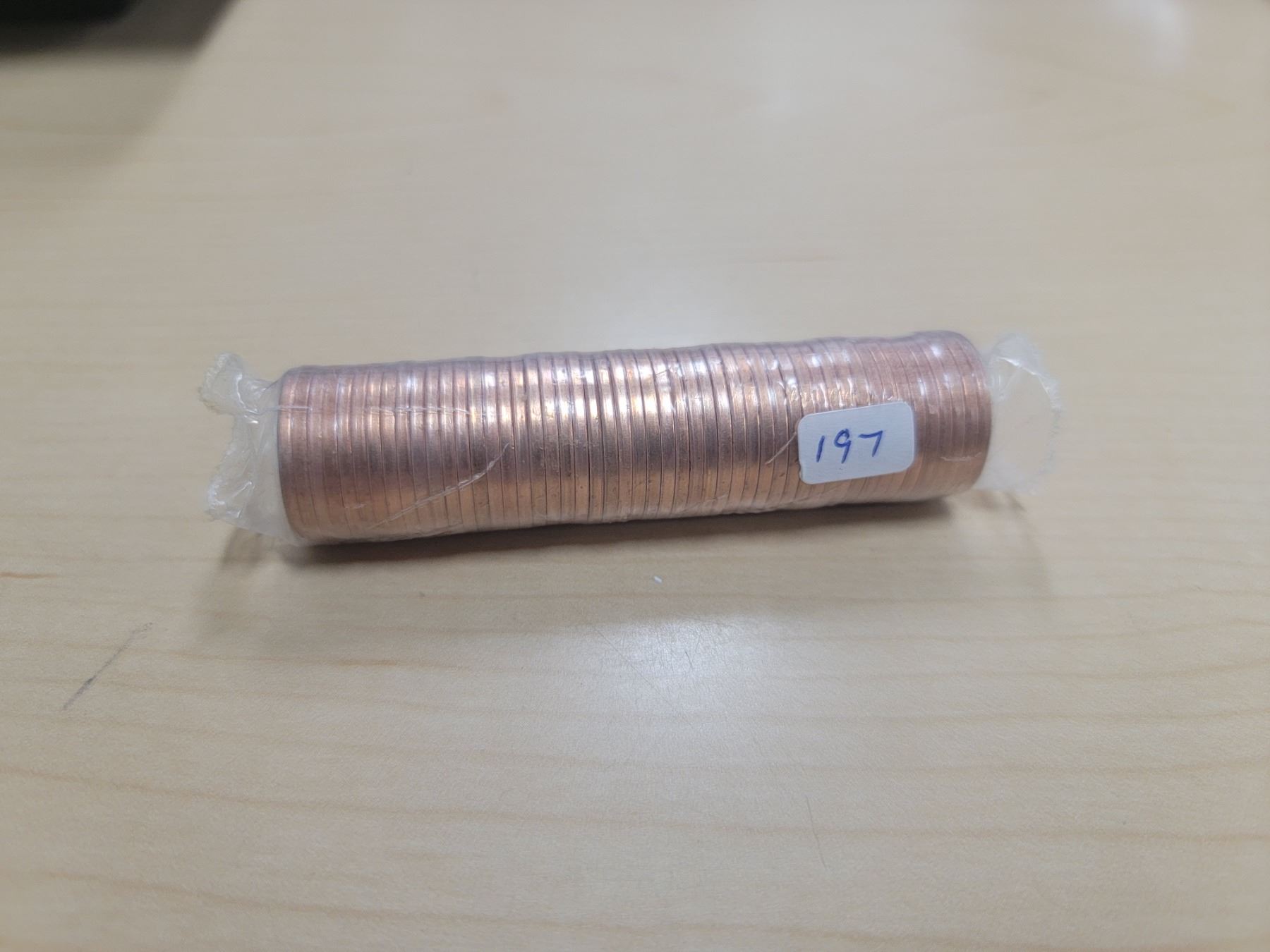2001 roll of Canadian one cent coins