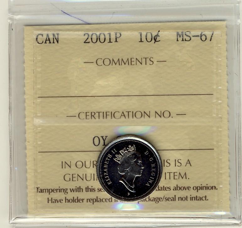 2001P 10¢ ICCS MS67. Just 1 listed in POP report.