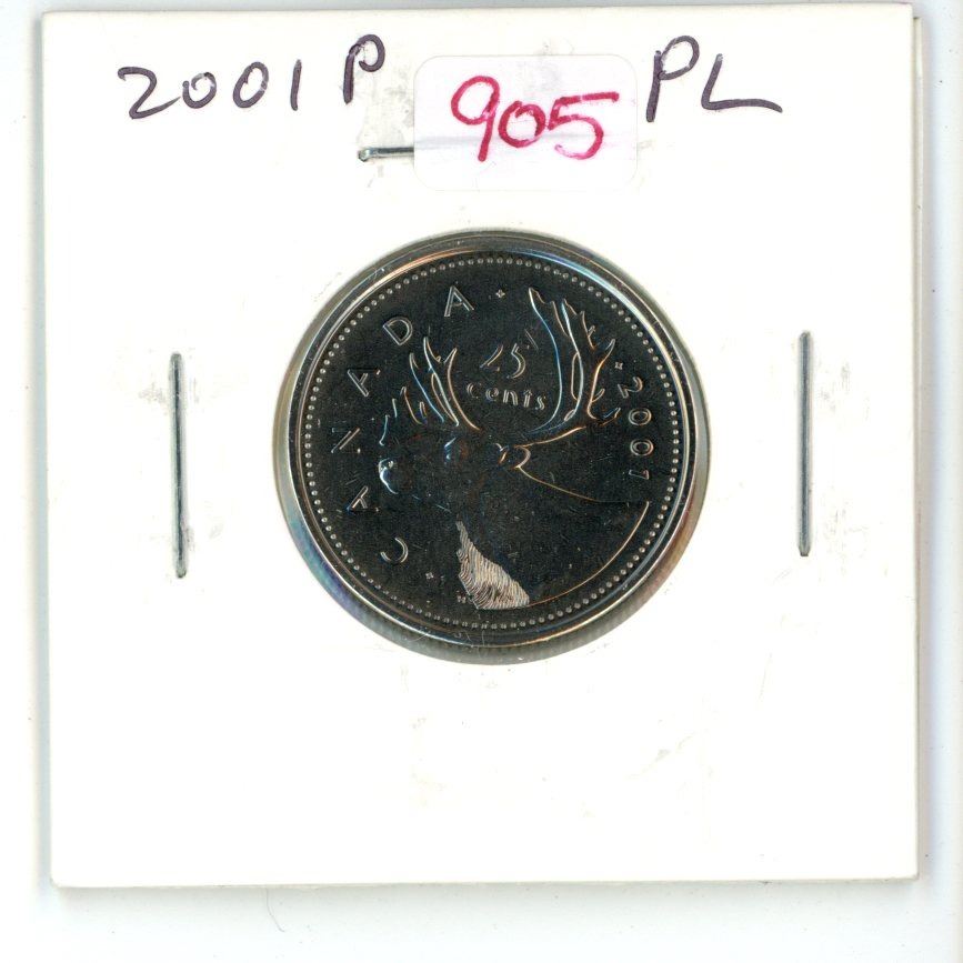 2001P Canadian 25 Cents. P = Plated. Proof Like-65.