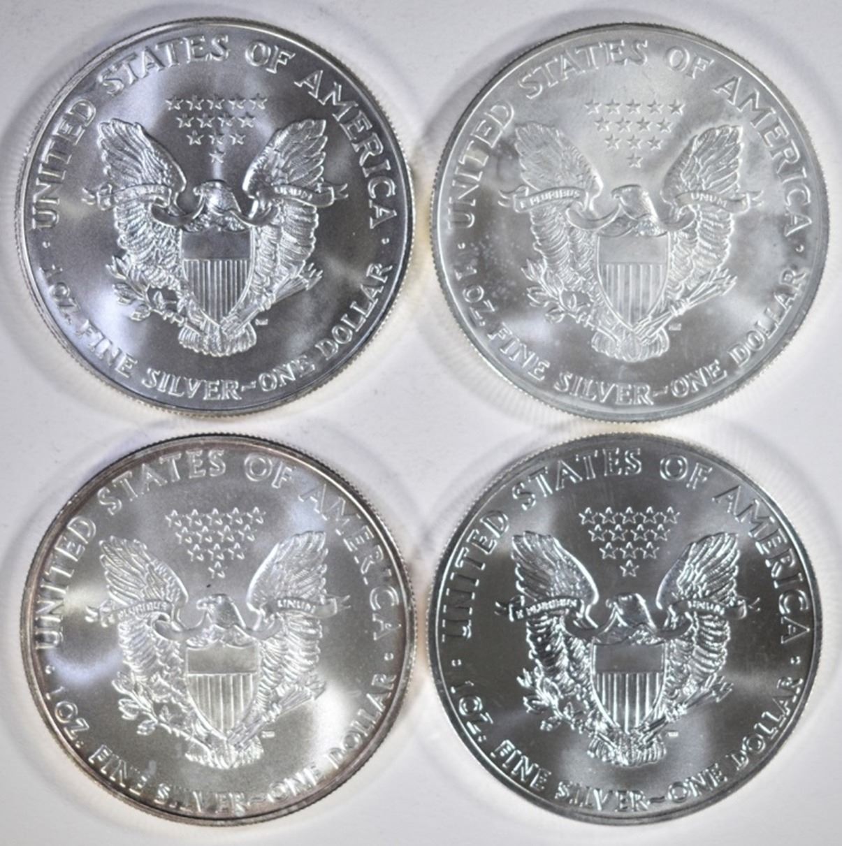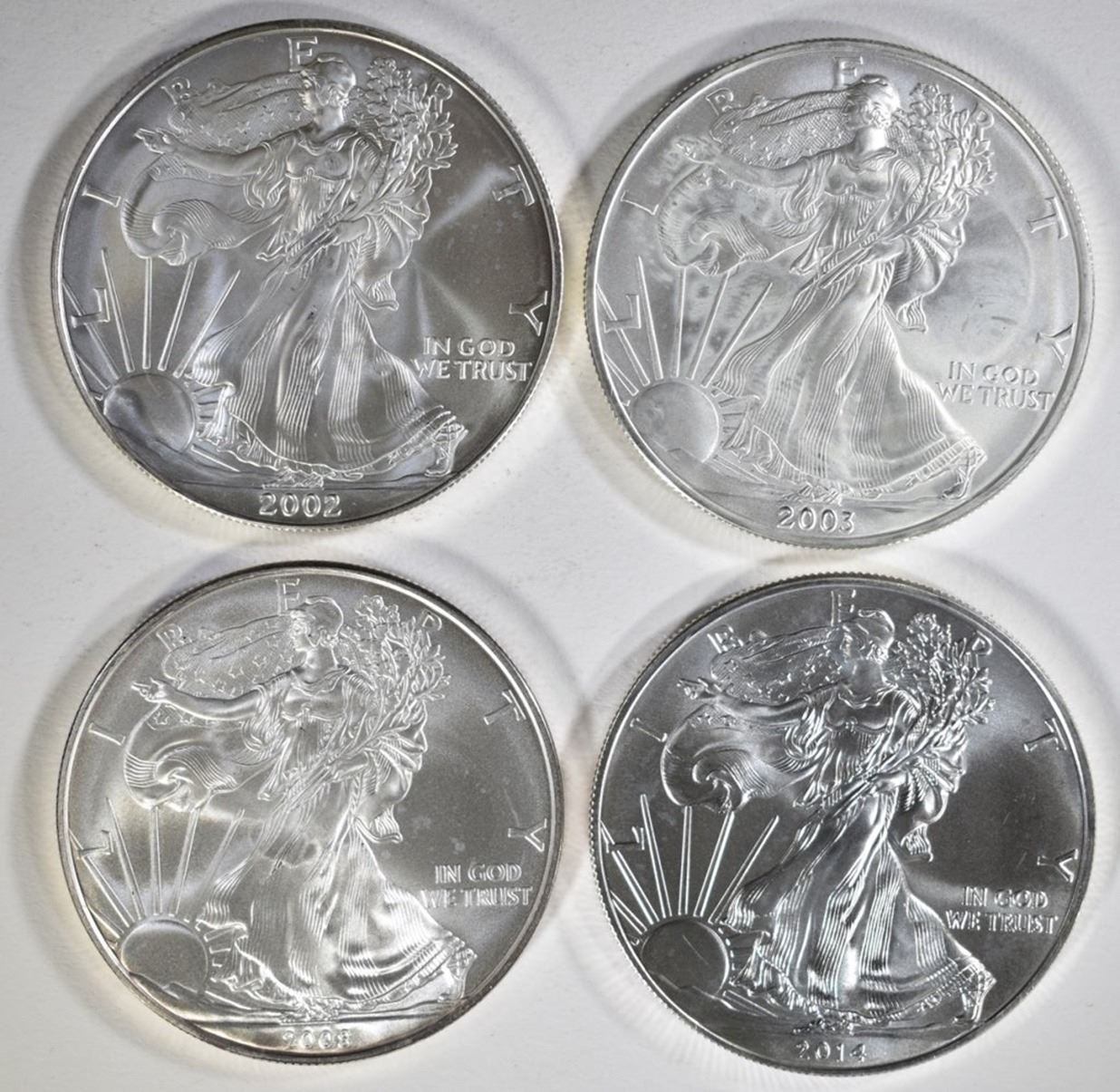 2002, 03, 08 & 14 BU AMERICAN SILVER EAGLES