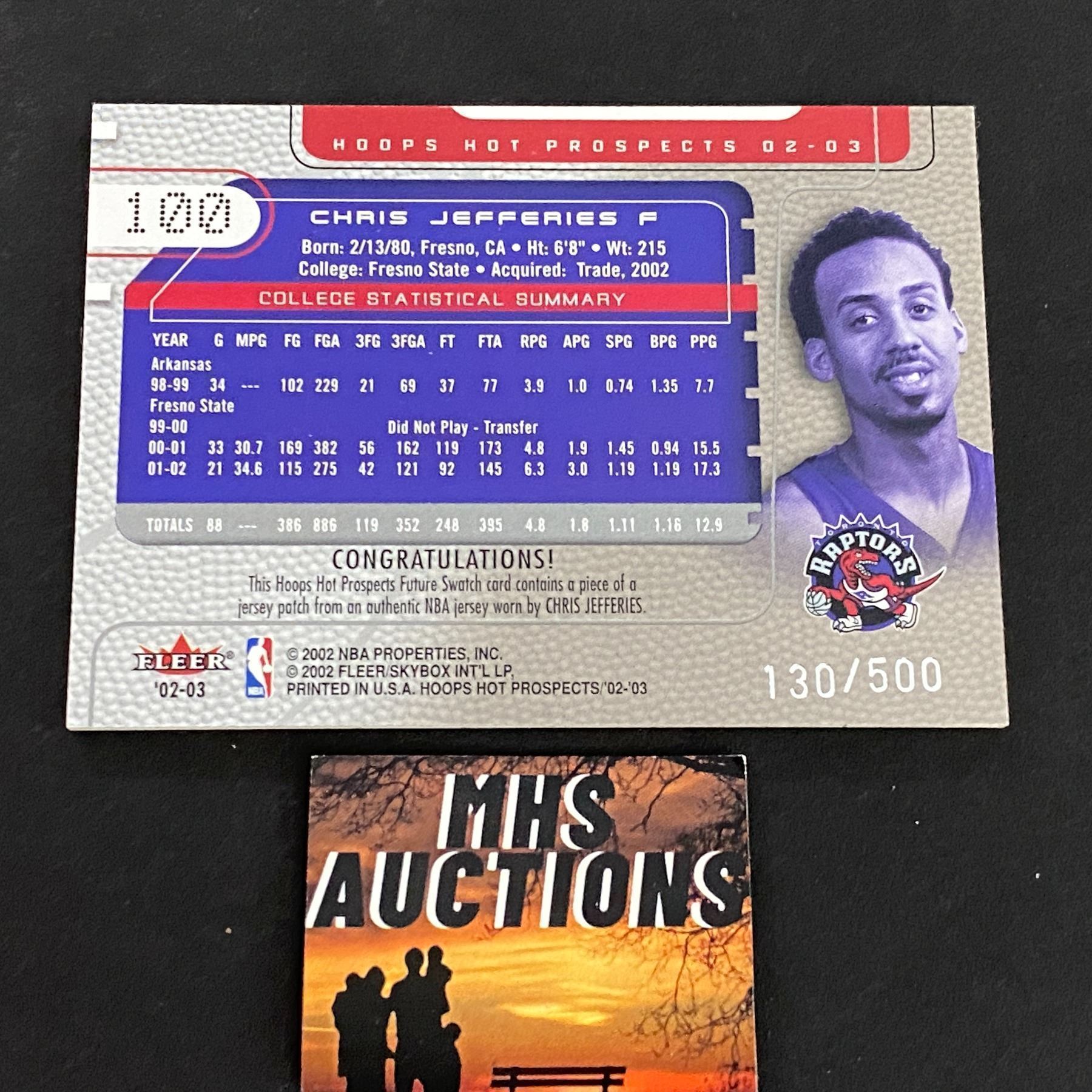 2002-03 FLEER CHRIS JEFFERIES PATCH CARD ONLY 500 MADE #130/500