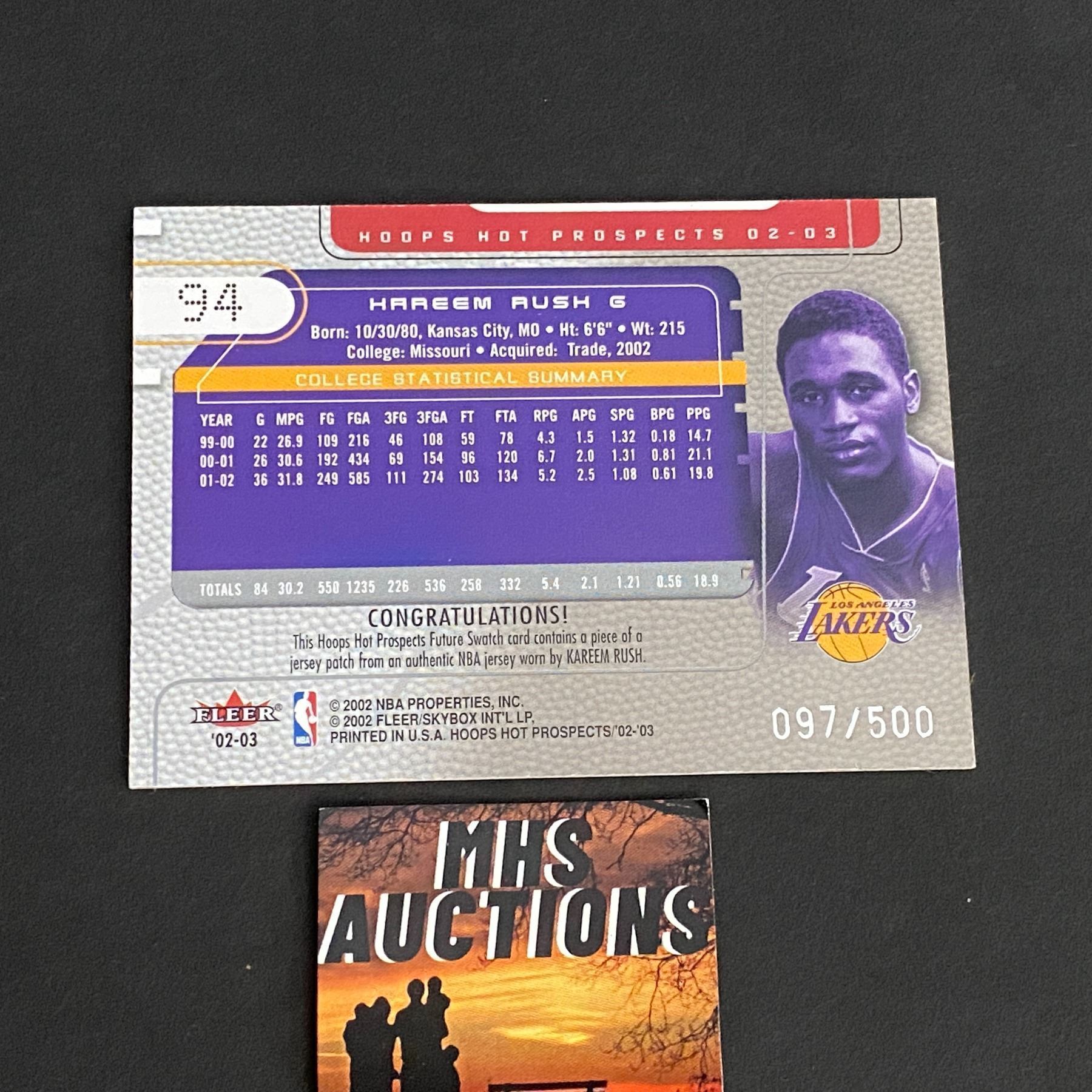 2002-03 FLEER HAREEM RUSH PATCH CARD ONLY 500 MADE #097/500