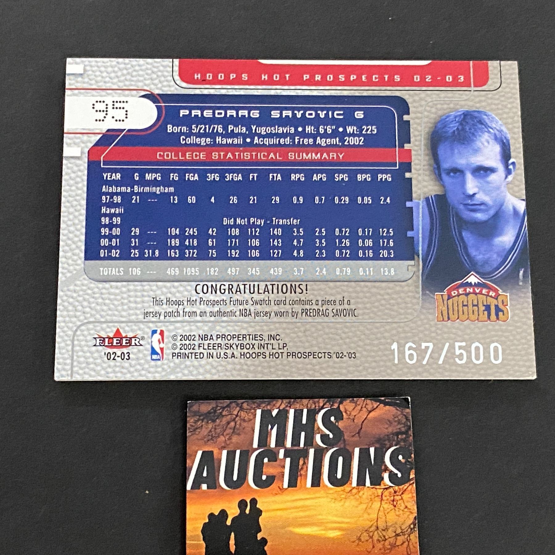 2002-03 FLEER PREDRAG SAVOVIC PATCH CARD ONLY 500 MADE #167/500