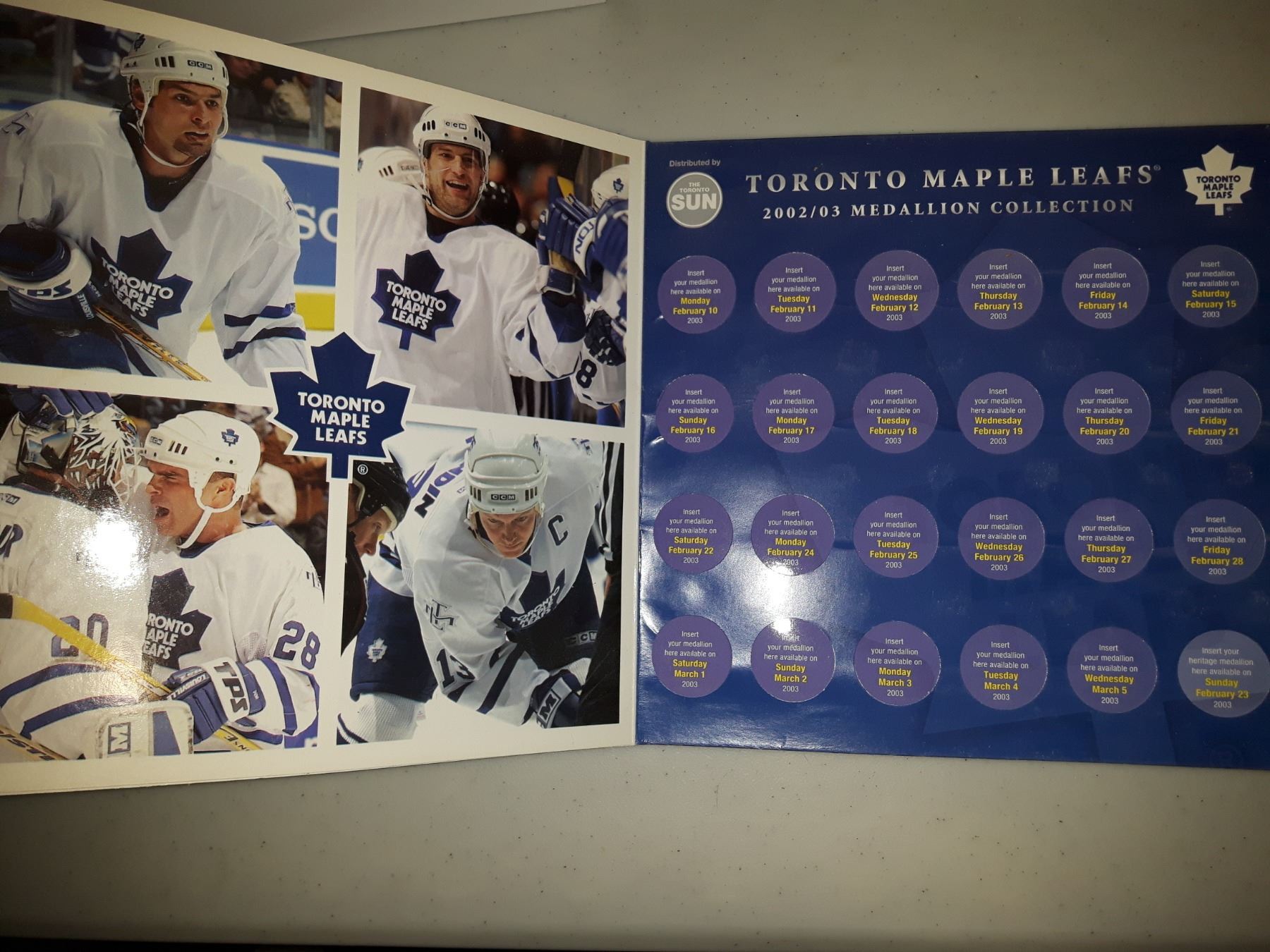 2002/03 Toronto Sun Toronto Maple Leafs Medallion Collection set of 24 Medallions with collector album. Distributed by the Toronto Sun