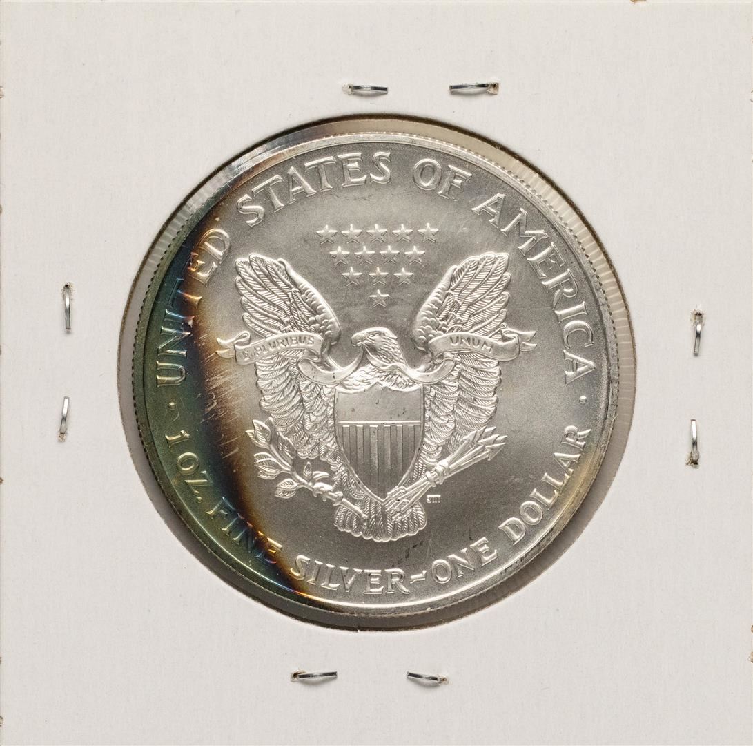 One 2002 $1 American Silver Eagle Coin Amazing Toning.