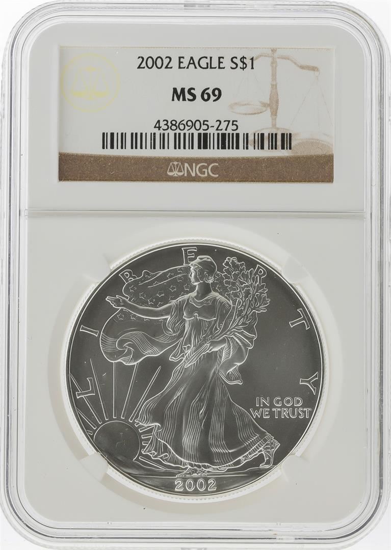 One 2002 $1 American Silver Eagle Coin NGC Graded MS69. NGC Certified.