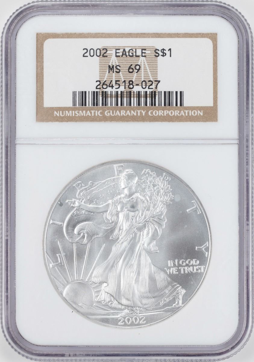 One 2002 $1 American Silver Eagle Coin NGC MS69.