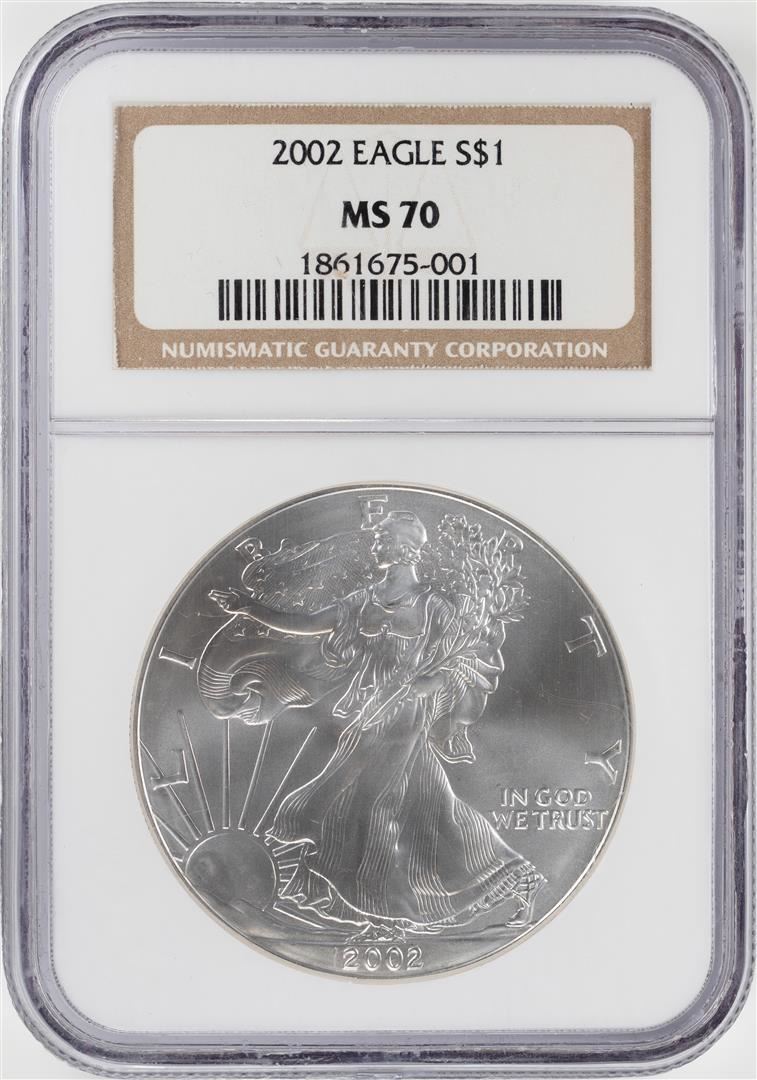One 2002 $1 American Silver Eagle Coin NGC MS70. NGC Certified.