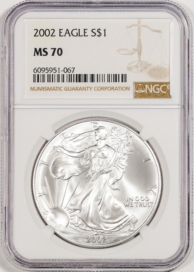 One 2002 $1 American Silver Eagle Coin NGC MS70. NGC Certified.