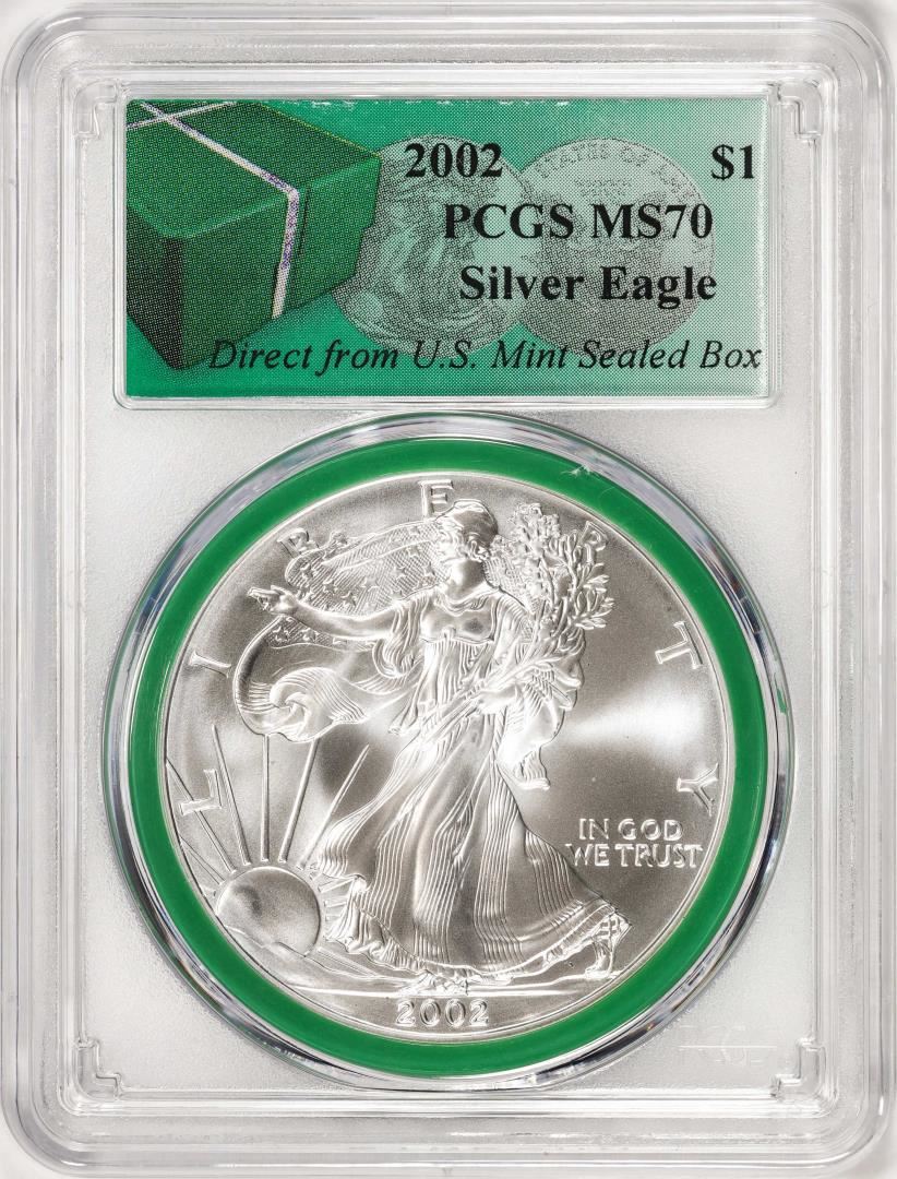 One 2002 $1 American Silver Eagle Coin PCGS MS70 Direct From U.S. Mint Sealed Box. PCGS Graded.