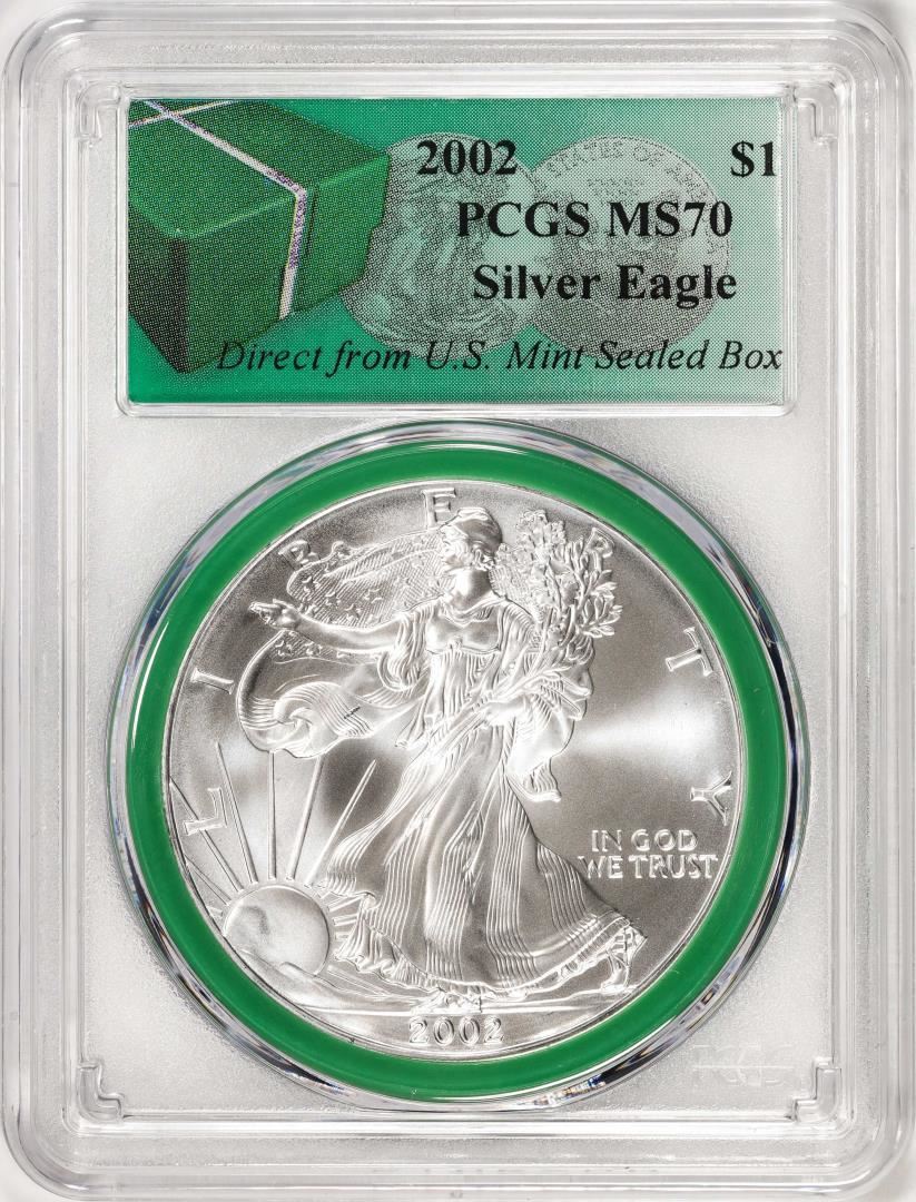 One 2002 $1 American Silver Eagle Coin PCGS MS70 Direct From U.S. Mint Sealed Box. PCGS Graded.