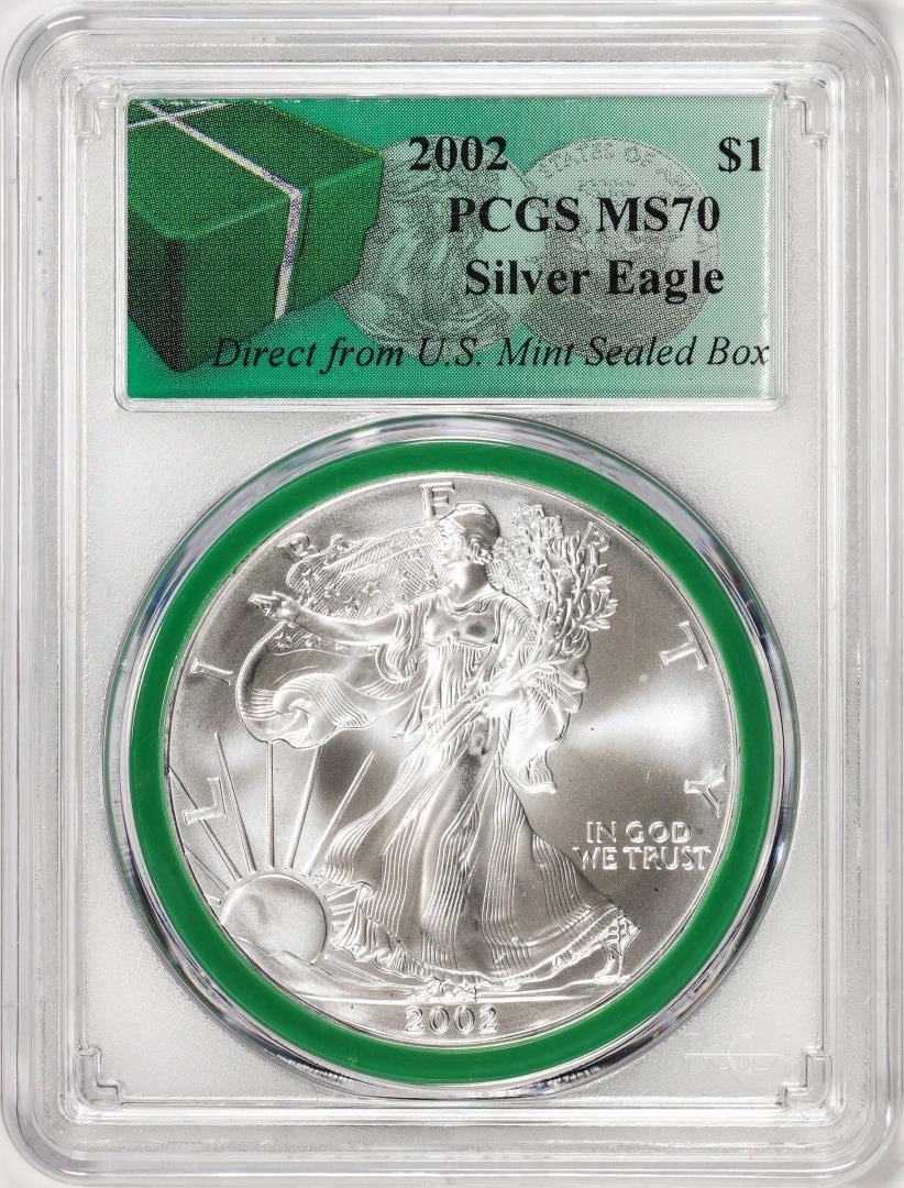 One 2002 $1 American Silver Eagle Coin PCGS MS70 Direct From U.S. Mint Sealed Box. PCGS Graded.