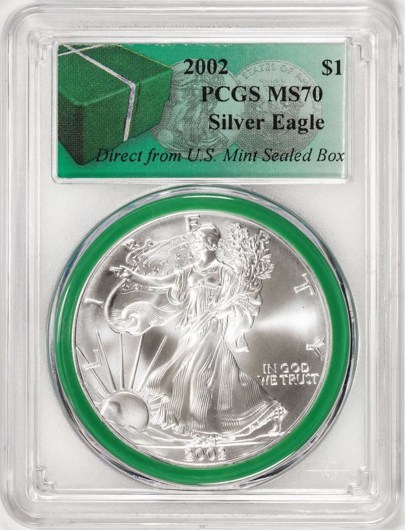 One 2002 $1 American Silver Eagle Coin PCGS MS70 Direct From U.S. Mint Sealed Box. PCGS Graded.
