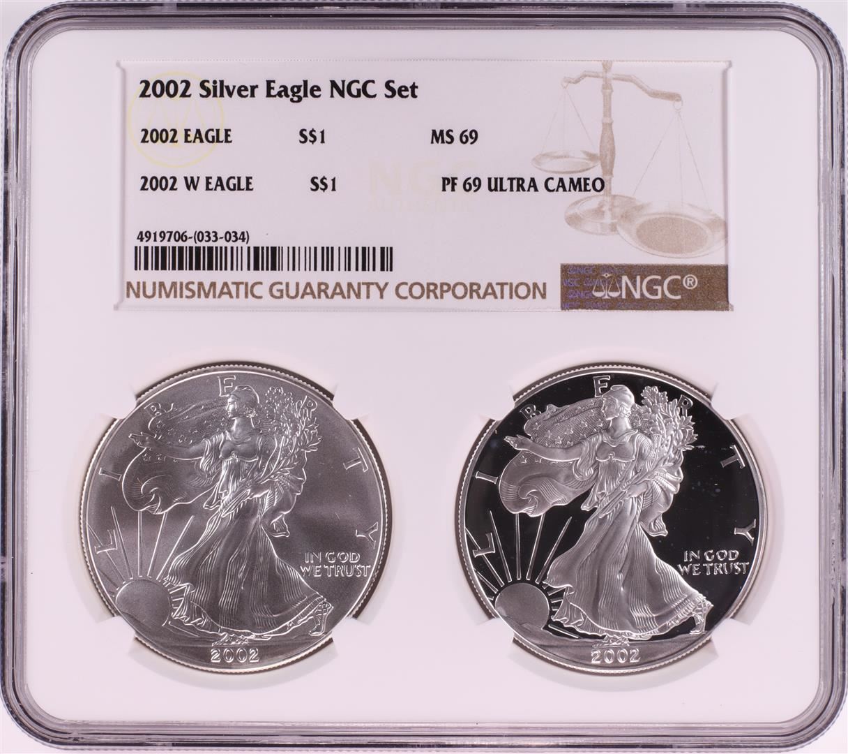 2002 $1 American Silver Eagle Coin Set NGC MS69/PF69 Ultra Cameo